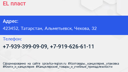 EL`пласт по адресу 423452, Татарстан, Альметьевск, Чехова, 32 в дальнейшем Организация, размещена в следующих категориях:
