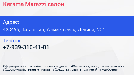 Kerama Marazzi, салон по адресу 423455, Татарстан, Альметьевск, Ленина, 201 в дальнейшем Организация, размещена в следующих категориях: