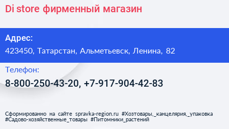 Di:store, фирменный магазин по адресу 423450, Татарстан, Альметьевск, Ленина, 82 в дальнейшем Организация, размещена в следующих категориях: