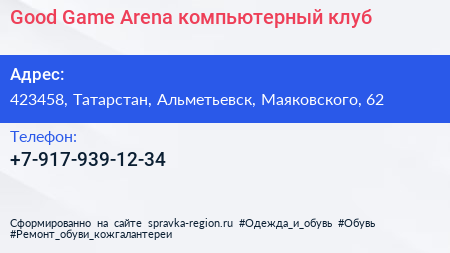 Good Game Arena, компьютерный клуб по адресу 423458, Татарстан, Альметьевск, Маяковского, 62 в дальнейшем Организация, размещена в следующих категориях: