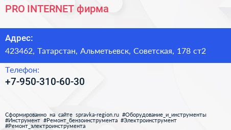 PRO INTERNET, фирма по адресу 423462, Татарстан, Альметьевск, Советская, 178 ст2 в дальнейшем Организация, размещена в следующих категориях: