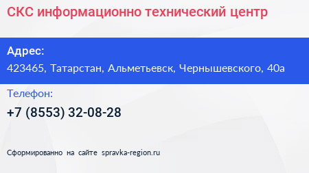 СКС, информационно-технический центр по адресу 423465, Татарстан, Альметьевск, Чернышевского, 40а в дальнейшем Организация, размещена в следующих категориях: