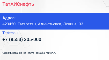 ТатАИСнефть по адресу 423450, Татарстан, Альметьевск, Ленина, 33 в дальнейшем Организация, размещена в следующих категориях: