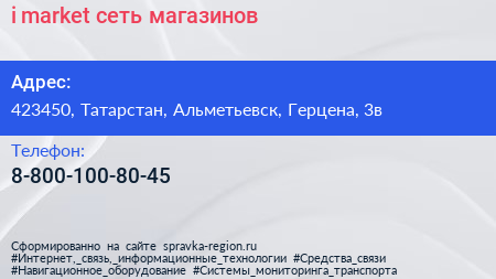 i-market, сеть магазинов по адресу 423450, Татарстан, Альметьевск, Герцена, 3в в дальнейшем Организация, размещена в следующих категориях: