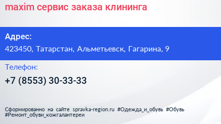 maxim, сервис заказа клининга по адресу 423450, Татарстан, Альметьевск, Гагарина, 9 в дальнейшем Организация, размещена в следующих категориях:
