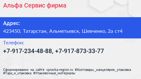 Альфа-Сервис, фирма по адресу 423450, Татарстан, Альметьевск, Шевченко, 2а ст4 в дальнейшем Организация, размещена в следующих категориях: