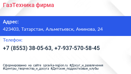ГазТехника, фирма по адресу 423403, Татарстан, Альметьевск, Аминова, 24 в дальнейшем Организация, размещена в следующих категориях:
