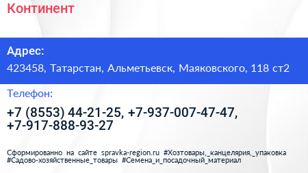 Континент по адресу 423458, Татарстан, Альметьевск, Маяковского, 118 ст2 в дальнейшем Организация, размещена в следующих категориях: