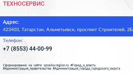 ТЕХНОСЕРВИС по адресу 423403, Татарстан, Альметьевск, проспект Строителей, 2Б в дальнейшем Организация, размещена в следующих категориях: