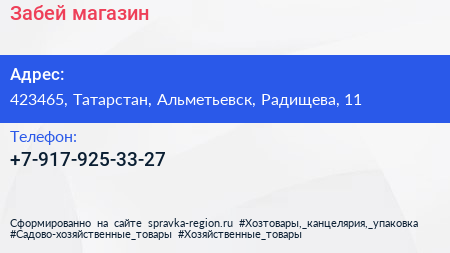Забей, магазин по адресу 423465, Татарстан, Альметьевск, Радищева, 11 в дальнейшем Организация, размещена в следующих категориях: