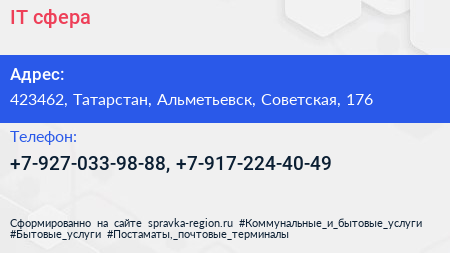 IT сфера по адресу 423462, Татарстан, Альметьевск, Советская, 176 в дальнейшем Организация, размещена в следующих категориях: