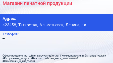 Магазин печатной продукции по адресу 423458, Татарстан, Альметьевск, Ленина, 1а в дальнейшем Организация, размещена в следующих категориях: