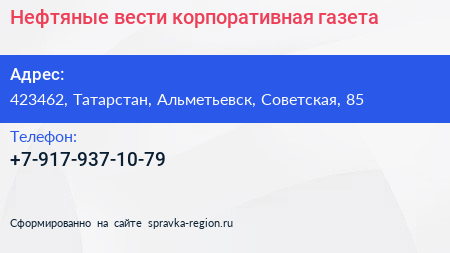 Нефтяные вести, корпоративная газета по адресу 423462, Татарстан, Альметьевск, Советская, 85 в дальнейшем Организация, размещена в следующих категориях: