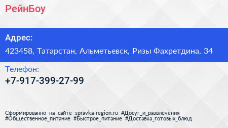 РейнБоу по адресу 423458, Татарстан, Альметьевск, Ризы Фахретдина, 34 в дальнейшем Организация, размещена в следующих категориях:
