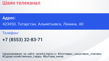 Шаян, телеканал по адресу 423450, Татарстан, Альметьевск, Ленина, 60 в дальнейшем Организация, размещена в следующих категориях: