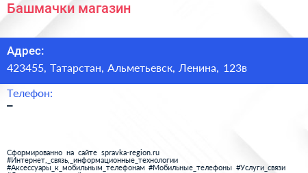 Башмачки, магазин по адресу 423455, Татарстан, Альметьевск, Ленина, 123в в дальнейшем Организация, размещена в следующих категориях: