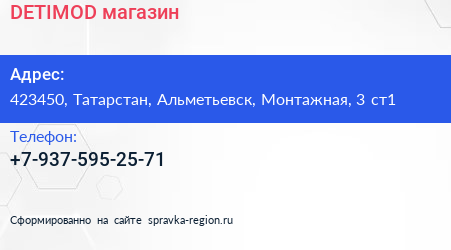 DETIMOD, магазин по адресу 423450, Татарстан, Альметьевск, Монтажная, 3 ст1 в дальнейшем Организация, размещена в следующих категориях: