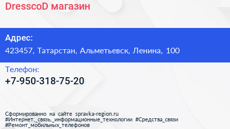 DresscoD, магазин по адресу 423457, Татарстан, Альметьевск, Ленина, 100 в дальнейшем Организация, размещена в следующих категориях: