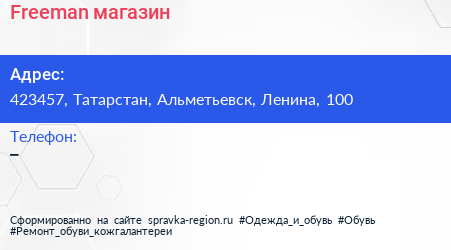 Freeman, магазин по адресу 423457, Татарстан, Альметьевск, Ленина, 100 в дальнейшем Организация, размещена в следующих категориях:
