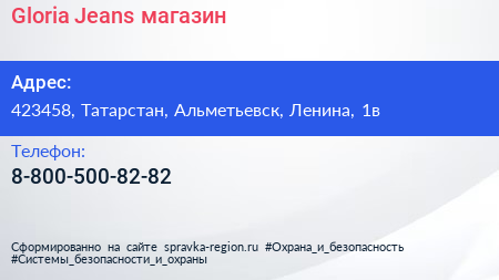 Gloria Jeans, магазин по адресу 423458, Татарстан, Альметьевск, Ленина, 1в в дальнейшем Организация, размещена в следующих категориях: