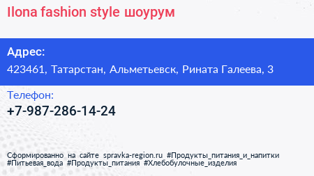 Ilona fashion style, шоурум по адресу 423461, Татарстан, Альметьевск, Рината Галеева, 3 в дальнейшем Организация, размещена в следующих категориях: