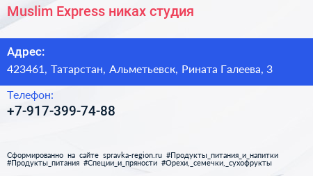 Muslim Express, никах-студия по адресу 423461, Татарстан, Альметьевск, Рината Галеева, 3 в дальнейшем Организация, размещена в следующих категориях: