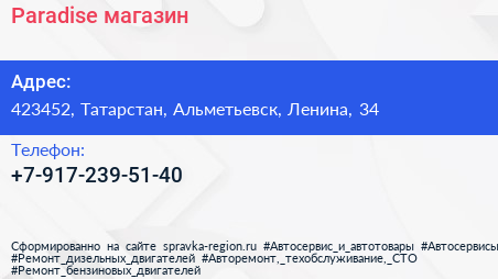 Paradise, магазин по адресу 423452, Татарстан, Альметьевск, Ленина, 34 в дальнейшем Организация, размещена в следующих категориях: