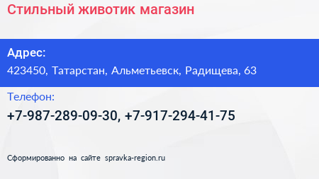 Стильный животик, магазин по адресу 423450, Татарстан, Альметьевск, Радищева, 63 в дальнейшем Организация, размещена в следующих категориях: