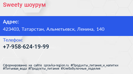 Sweety, шоурум по адресу 423403, Татарстан, Альметьевск, Ленина, 140 в дальнейшем Организация, размещена в следующих категориях: