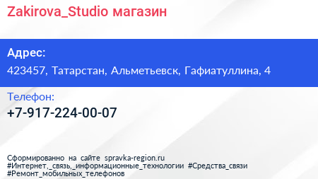 Zakirova_Studio, магазин по адресу 423457, Татарстан, Альметьевск, Гафиатуллина, 4 в дальнейшем Организация, размещена в следующих категориях: