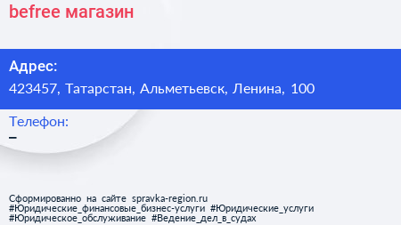 befree, магазин по адресу 423457, Татарстан, Альметьевск, Ленина, 100 в дальнейшем Организация, размещена в следующих категориях: