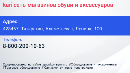 kari, сеть магазинов обуви и аксессуаров по адресу 423457, Татарстан, Альметьевск, Ленина, 100 в дальнейшем Организация, размещена в следующих категориях: