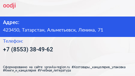 oodji по адресу 423450, Татарстан, Альметьевск, Ленина, 71 в дальнейшем Организация, размещена в следующих категориях: