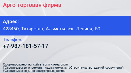 Арго, торговая фирма по адресу 423450, Татарстан, Альметьевск, Ленина, 80 в дальнейшем Организация, размещена в следующих категориях: