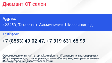 Диамант СТ, салон по адресу 423453, Татарстан, Альметьевск, Шоссейная, 1д в дальнейшем Организация, размещена в следующих категориях: