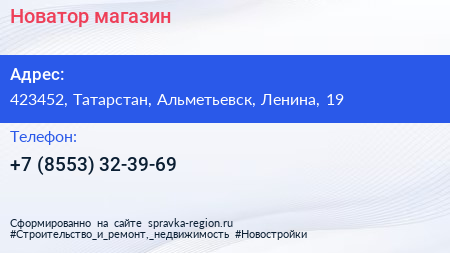 Новатор, магазин по адресу 423452, Татарстан, Альметьевск, Ленина, 19 в дальнейшем Организация, размещена в следующих категориях: