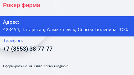 Рокер, фирма по адресу 423454, Татарстан, Альметьевск, Сергея Тюленина, 100а в дальнейшем Организация, размещена в следующих категориях: