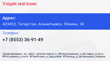 Унция, магазин по адресу 423452, Татарстан, Альметьевск, Ленина, 34 в дальнейшем Организация, размещена в следующих категориях: