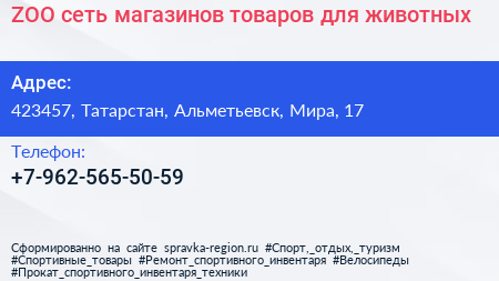 ZOO, сеть магазинов товаров для животных по адресу 423457, Татарстан, Альметьевск, Мира, 17 в дальнейшем Организация, размещена в следующих категориях:
