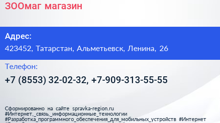 ЗООмаг, магазин по адресу 423452, Татарстан, Альметьевск, Ленина, 26 в дальнейшем Организация, размещена в следующих категориях: