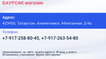 БАУРСАК, магазин по адресу 423450, Татарстан, Альметьевск, Монтажная, 2/4а в дальнейшем Организация, размещена в следующих категориях: