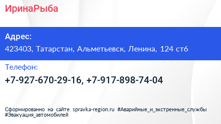#ИринаРыба по адресу 423403, Татарстан, Альметьевск, Ленина, 124 ст6 в дальнейшем Организация, размещена в следующих категориях: