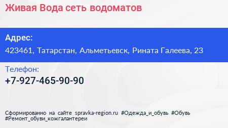 Живая Вода, сеть водоматов по адресу 423461, Татарстан, Альметьевск, Рината Галеева, 23 в дальнейшем Организация, размещена в следующих категориях: