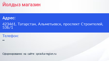 Йолдыз, магазин по адресу 423461, Татарстан, Альметьевск, проспект Строителей, 53Б/1 в дальнейшем Организация, размещена в следующих категориях: