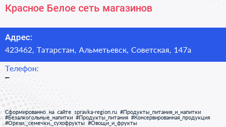 Красное & Белое, сеть магазинов по адресу 423462, Татарстан, Альметьевск, Советская, 147а в дальнейшем Организация, размещена в следующих категориях: