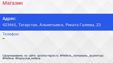 Магазин по адресу 423461, Татарстан, Альметьевск, Рината Галеева, 23 в дальнейшем Организация, размещена в следующих категориях: