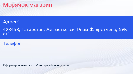 Морячок, магазин по адресу 423458, Татарстан, Альметьевск, Ризы Фахретдина, 59Б ст1 в дальнейшем Организация, размещена в следующих категориях: