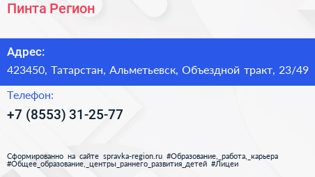 Пинта-Регион по адресу 423450, Татарстан, Альметьевск, Объездной тракт, 23/49 в дальнейшем Организация, размещена в следующих категориях: