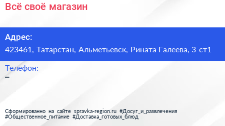 Всё своё, магазин по адресу 423461, Татарстан, Альметьевск, Рината Галеева, 3 ст1 в дальнейшем Организация, размещена в следующих категориях: