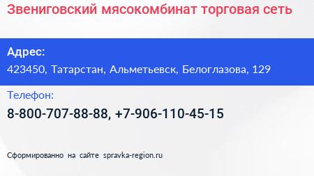 Звениговский мясокомбинат, торговая сеть по адресу 423450, Татарстан, Альметьевск, Белоглазова, 129 в дальнейшем Организация, размещена в следующих категориях:
